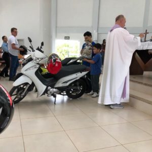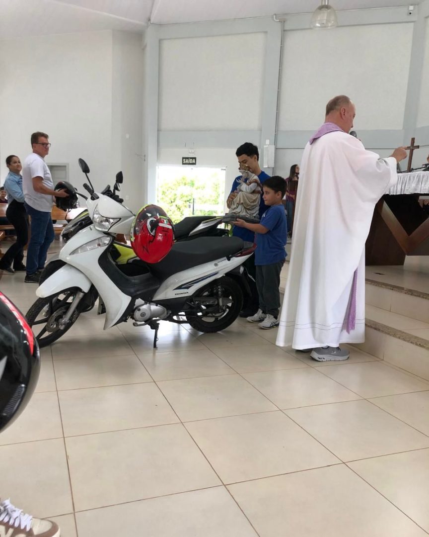 Na sequência, os fiéis participaram da Santa Missa, que foi abençoada no santuário pelo Frei Antônio. A celebração marcou o encerramento da programação e reuniu motociclistas, familiares e membros da comunidade em um momento de oração e gratidão. Durante a homilia, o sacerdote reforçou a importância da responsabilidade no trânsito e do cuidado com a própria vida e com a vida do próximo.