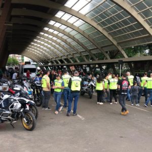 Logo cedo, a partir das 8h, os participantes começaram a se concentrar na Rua Coberta, no centro da cidade. Motociclistas de diferentes grupos, estilos e idades chegaram ao local para participar do evento, que já se tornou uma tradição da Paróquia Nossa Senhora do Rosário. O clima era de confraternização e expectativa para o início do trajeto.