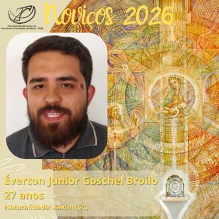 A celebração da Admissão ao Noviciado acontecerá às 18h, durante a Oração das Vésperas, e terá lugar na Fraternidade local, localizada na Rua Frei Bruno, s/n, Centro. Na ocasião, serão admitidos para o ano do noviciado os jovens Abraão da Silva Lima, Cauã Bertolacini Sampaio, Emerson Fernandes Sabino, Éverton Junior Goschel Broilo, Gabriel Alves dos Santos Silva e Mateus Ferreira de Lima.