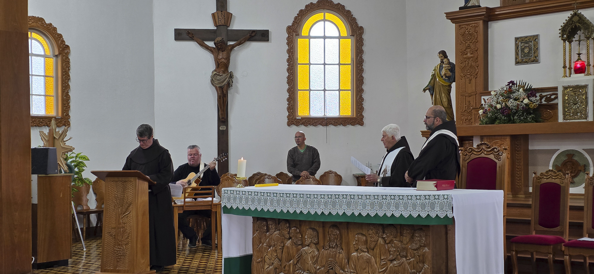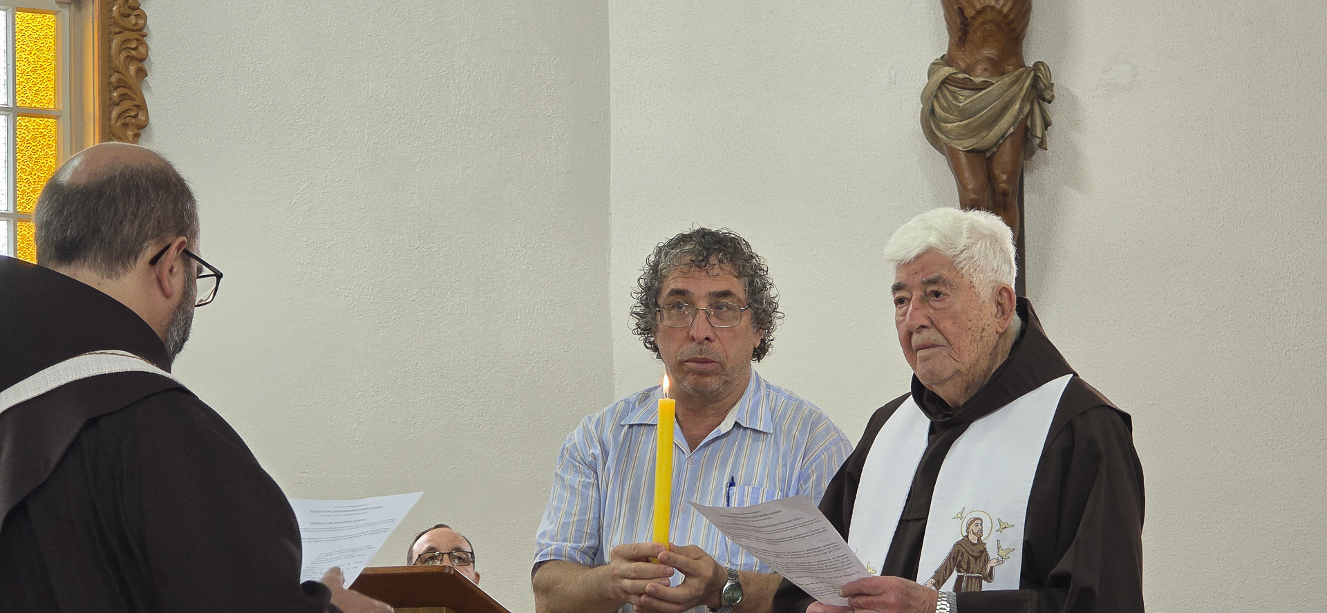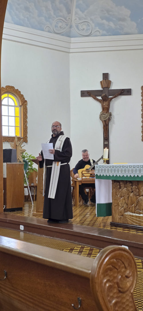 Por fim, o frade conectou essa identificação pessoal com a dimensão comunitária da vocação: o chamado não é só para o indivíduo, mas para a Igreja e para a fraternidade. Ao saudar os jubilandos e pedir que a comunidade os acompanhe, ele lembrou que a história vocacional se faz “no plural”, por laços de fé, escuta e serviço. “Nós somos lugar fértil para que se revele em nosso povo, na nossa vida, a opção de Jesus pela salvação de todos nós”. E, conclamou os frades a ajudarem-se mutuamente nessa caminhada.
