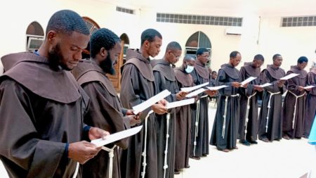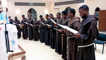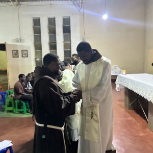 No oitavo dia de Dezembro, quando a Igreja nos convidava a celebrar a solenidade da Imaculada Conceição da Santa Virgem Maria, que é por sinal a padroeira da Custódia Franciscana de Angola, pelas 18 horas, celebrou-se também a Santa Missa na qual vários frades renovaram a profissão de seus votos (obediência, castidade e sem nada de próprio), tal como a ordem tradicionalmente propõe.