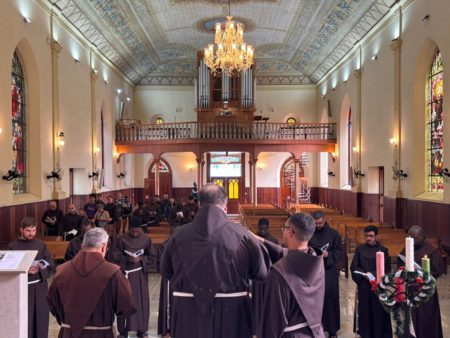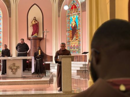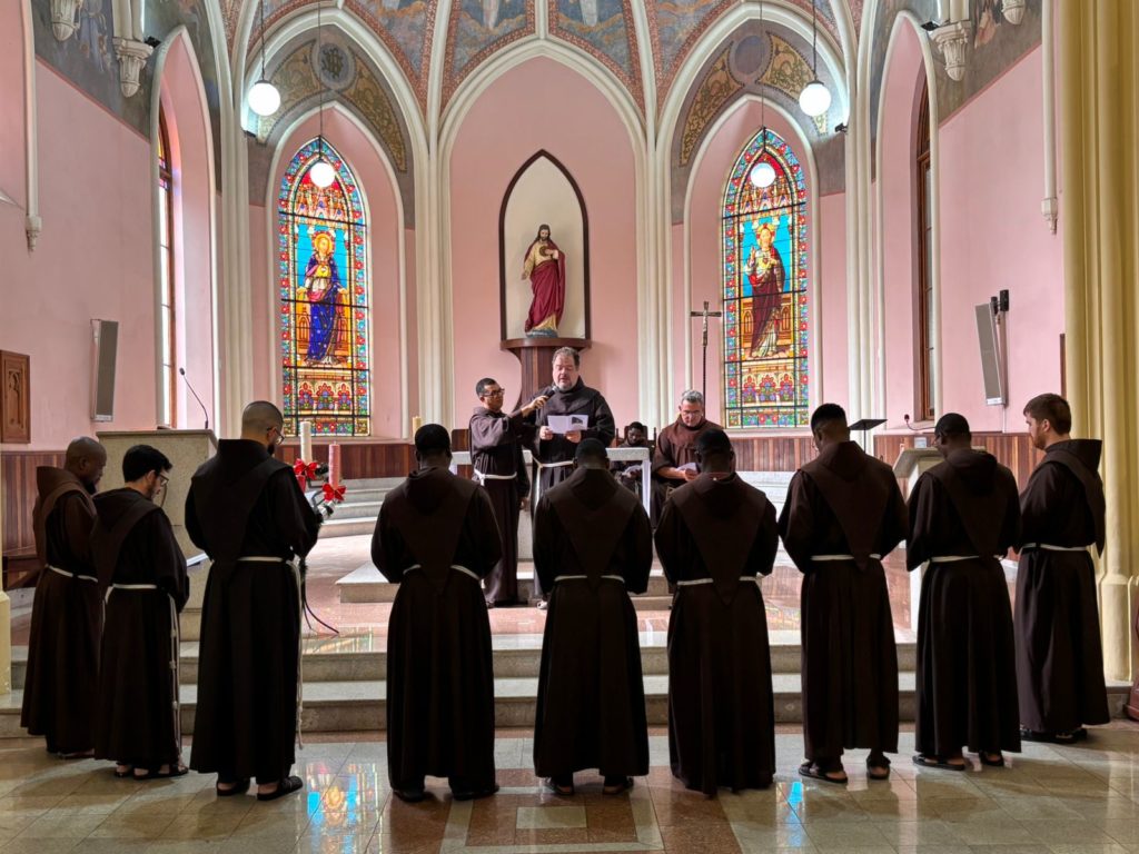 A Fraternidade do Sagrado Coração de Jesus celebrou, no sábado, 6 de dezembro, a Renovação dos Votos Religiosos de nove frades estudantes de Teologia: Frei Adriano Fernando Sumbelelo, Frei Bruno Almeida de Mello, Frei Caio dos Santos da Silva, Frei Escovalo Gabriel Domingos, Frei Januário Mendonça Barreto de Carvalho, Frei Paulo Camuanguina Alexandre, Frei Pedro Isaías Luisa Vitangui, Frei Simão Albino Katenha Kaquinta e Frei Vinícius de Oliveira Betim. A celebração ocorreu durante a Oração das Laudes e contou com a presença do Vigário Provincial, Frei Gustavo Medella; de Frei Ivair Bueno de Carvalho, Custódio da Imaculada Mãe de Deus de Angola; dos frades da fraternidade local e da comunidade paroquial.
