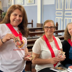 O frade destacou a sinceridade que levamos em nosso coração; ele não mente. “A boca pode falar uma coisa, mas em nosso coração sabemos a verdade, essa verdade que muitas vezes não dizemos, assim como o Santo Padre diz nesse documento. Nossa devoção passa por nosso coração, pelo amor, na capacidade de sermos sinceros com nós mesmos e com nosso coração, desse amor humano e divino no coração de Cristo. Devemos nos inspirar neste amor de Cristo para construir um mundo mais justo, solidário, fraterno. Nós, do Apostolado da Oração, somos esse exemplo de levar Cristo a todos os lugares, de ter orgulho desta fita vermelha que usamos, de sermos testemunho do amor d’Ele”, afirmou Frei Jonas.