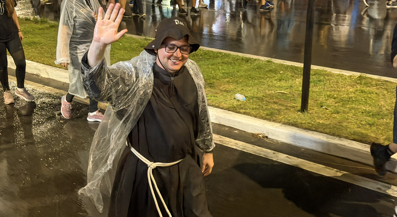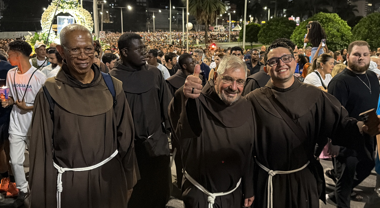 Para a Romaria dos Homens de 2026, além de ter seu Filho nos braços e, n’Ele, as centenas de milhares de filhos e filhas que a acompanhavam, Maria convidou Francisco de Assis, intitulado não por si próprio, e provavelmente contra a própria vontade, como o “Outro Cristo”, tal a similaridade que alcançou em seu coração apaixonado com o Filho de Deus. Com Cristo, Francisco e a multidão que os acompanha, Maria também reza com os pés. A Mãe das Alegrias assume o cetro de Rainha da Paz e revela que a paz tão sonhada, desarmada e desarmante, conforme propõe o Papa Leão XIV, só será construída à custa de muito empenho e movimento.