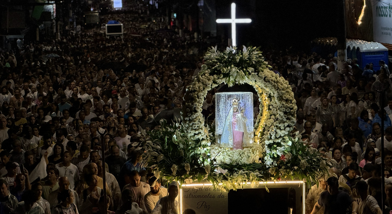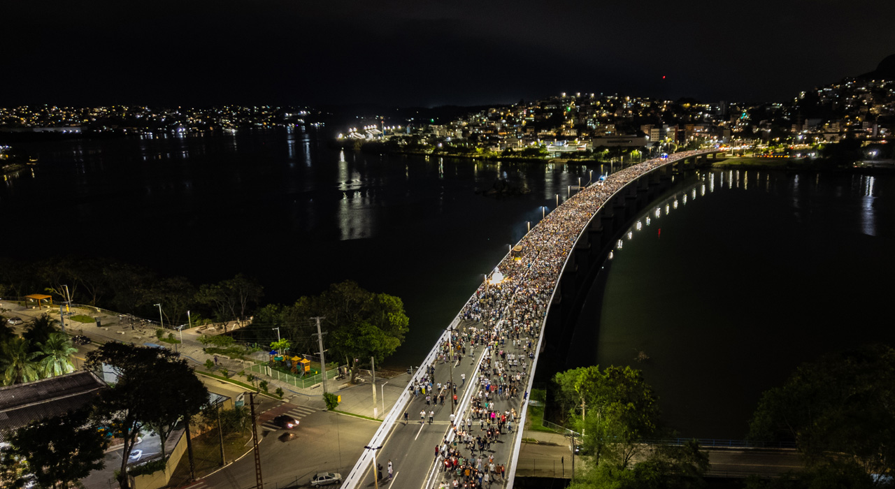Instrumento é meio para se alcançar um fim. Não é o mais importante, mas se torna essencial. Sem instrumento adequado, o fim acaba comprometido. A soma das centenas de milhares de fiéis e devotos formou a multidão caminheira concentrada em frente à Catedral de Nossa Senhora das Vitórias, disposta a ser instrumento de paz. Agradecimentos, pedidos, alegrias, dores, sonhos e aflições, conduzidos nos 14 km de percurso junto às velas acesas, coloriram e iluminaram a noite das irmãs e vizinhas Vitória e Vila Velha. Ninguém veio para encontrar desconhecidos, concorrentes ou apenas uma multidão anônima que se comprime para caminhar no cansaço e no calor. Os peregrinos vieram para encontrar irmãs e irmãs, para dar um testemunho de que a paz não é uma construção solitária, mas fruto do esforço de milhares, milhões, que se dispõem a ouvir os apelos de Deus na realidade do dia a dia, dando seu melhor, buscando contribuir para que a vida seja mais simples, fácil e feliz.