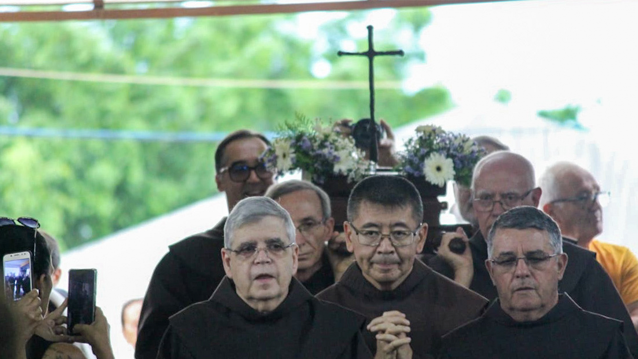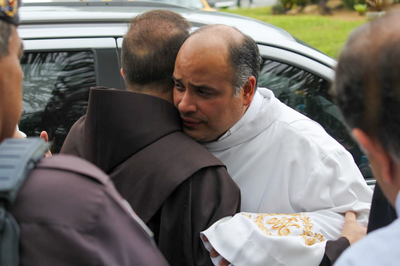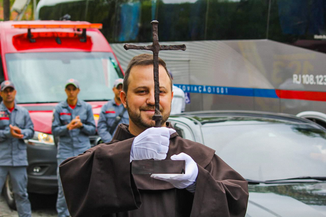 Frei Diego prestou ainda uma homenagem emocionada ao Padre Omar, responsável por trazer a cruz ao Brasil, que mesmo enfrentando o luto recente pela perda do pai, manteve sua missão, tornando-se exemplo de fé e resiliência.