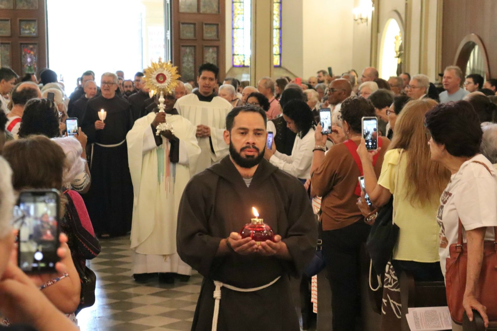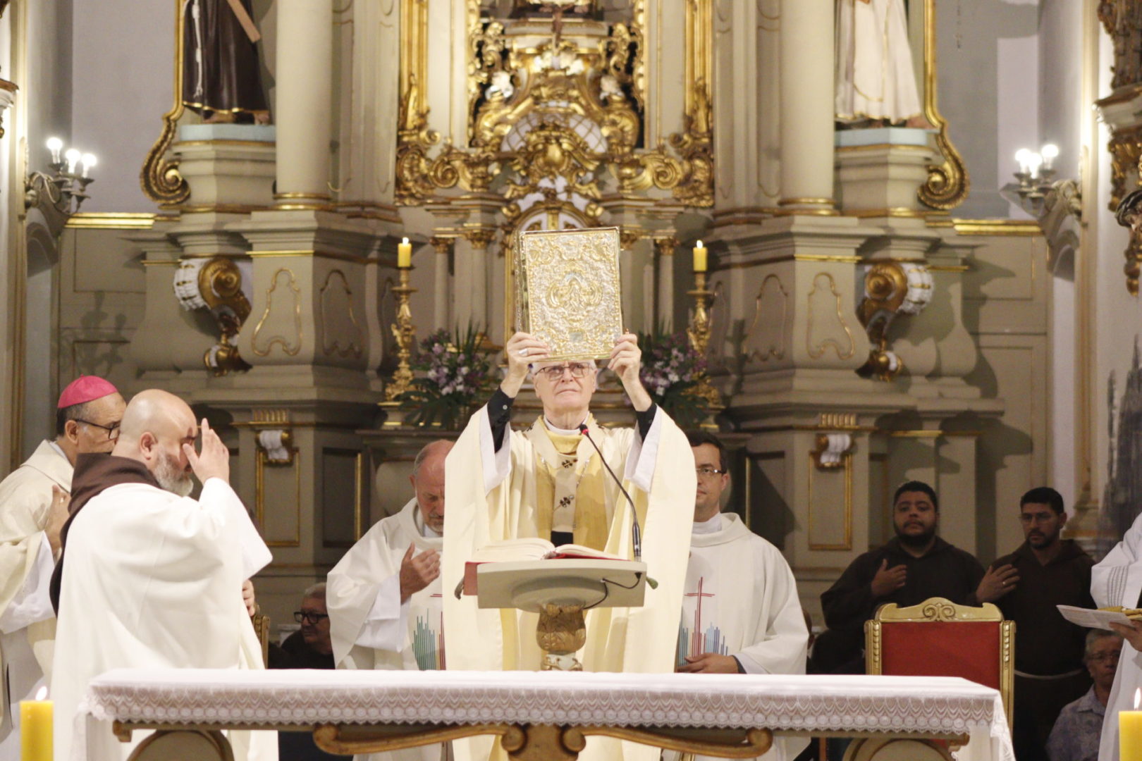 Frades, religiosas, membros da Ordem Franciscana Secular e simpatizantes do carisma franciscano lotaram a igreja do Santuário. Destaque para a presença dos Ministros provinciais da Primeira Ordem: Frei Paulo Roberto Pereira, da Ordem dos Frades Menores; Frei José Hugo da Silva Santos, da Ordem dos Frades Menores Conventuais; e Frei Maurício dos Anjos, da Ordem dos Frades Menores Capuchinhos.