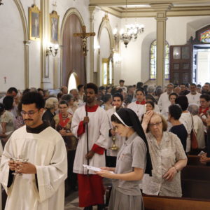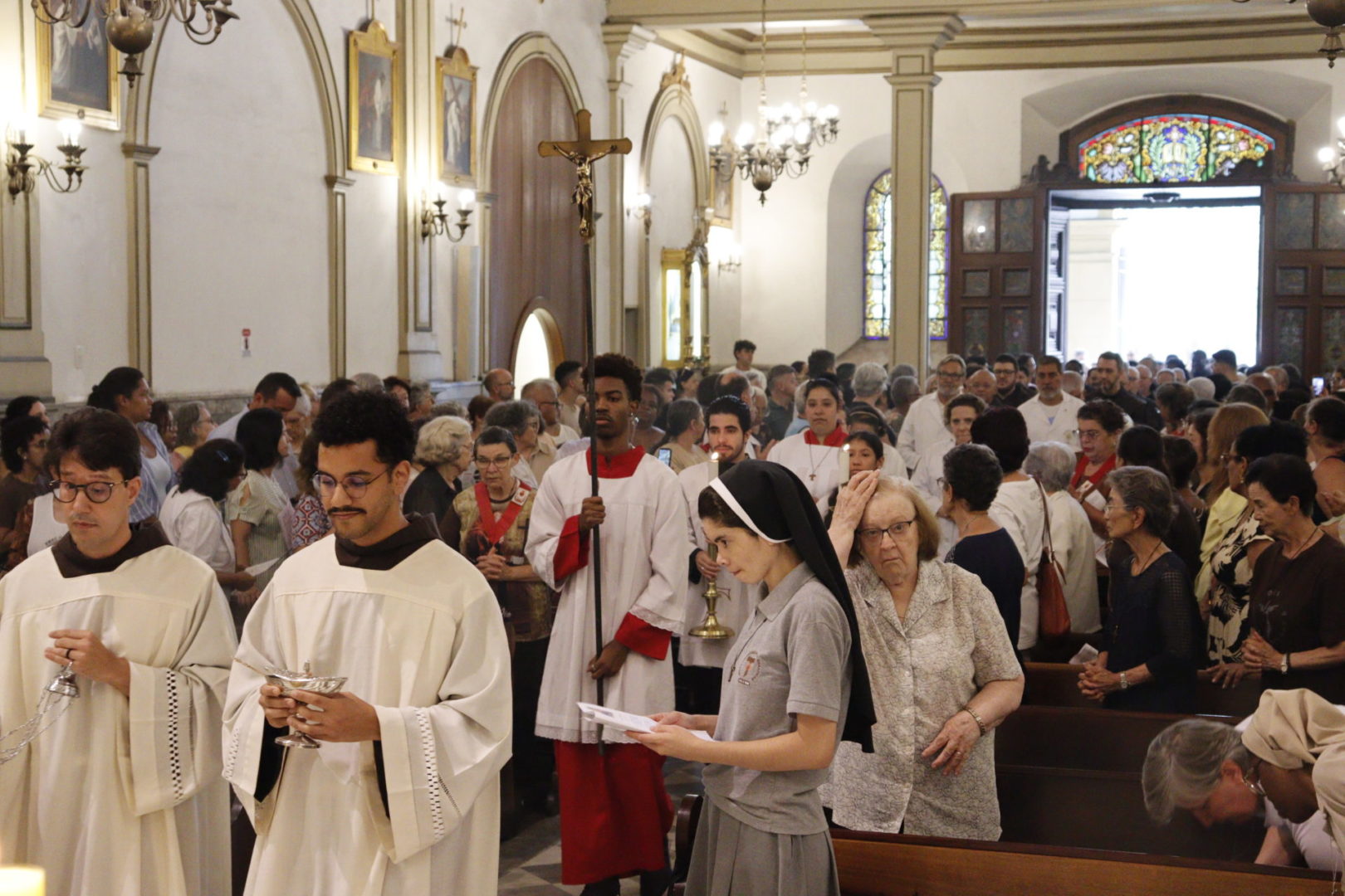 Em sua homilia, Dom Odilo manifestou sua alegria em celebrar a abertura do Ano Jubilar Franciscano junto de tantos irmãos e irmãs da Família Franciscana, ainda mais em uma igreja tão singular e especial para a arquidiocese. “Na memória dos 800 anos do Trânsito de São Francisco, damos início hoje ao Jubileu Franciscano em nossa Igreja de São Paulo, jubileu este promulgado pelo Papa Leão XIV no dia 10 de janeiro. Quero destacar, já de início, a grande riqueza e fecundidade desse carisma para toda a Igreja. Um carisma que floresceu e continua a florescer por todo o mundo. Um carisma que é graça e que, neste ano jubilar, quer também ser graça para todos os que participarem das práticas jubilares próprias, definidas pela Igreja. Hoje, damos início a esse jubileu neste Santuário de São Francisco e São Domingos, mas, como nos lembra o documento de promulgação, ele se estende a todas as igrejas franciscanas e lugares de devoção a São Francisco em todo o mundo”.