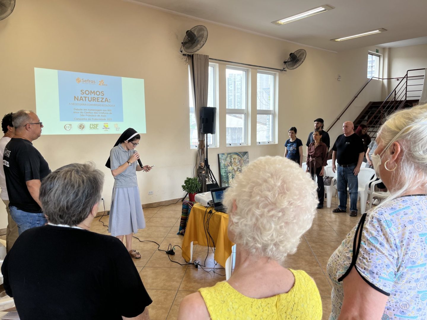 Na última quarta-feira (2), o Sefras – Ação Social Franciscana,  promoveu um importante momento de reflexão sobre a Ecologia Integral e os desafios contemporâneos do Paradigma do Cuidado e da defesa da Casa Comum. O evento “Somos Natureza: a necessária conversão ecológica!” ocorreu em meio às comemorações pelos 800 anos do Cântico das Criaturas e ao chamado da Campanha da Fraternidade de 2025, contando com a presença de convidados especiais: Frei Vitório Mazzuco, OFM, e a professora Márcia Maria de Oliveira, da UFRR.