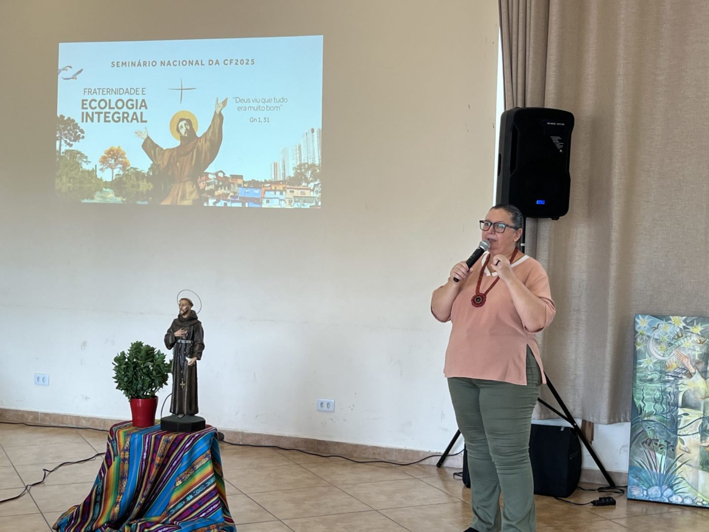Já a professora Márcia abordou a construção da Campanha da Fraternidade de 2025, enfatizando a necessidade de reconhecer a natureza como sujeito de direitos. “Precisamos resgatar a Sabedoria Ancestral e compreender que a luta pela Ecologia Integral é também a luta pelo direito à vida em todas as suas formas.”