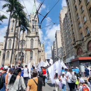 Ao retornarem à Catedral da Sé, os participantes encerraram a caminhada recordando, na Ressurreição do Senhor, o sonho de um mundo transformado pelo cuidado e pelo respeito à criação e a todos os seres. Jovens e crianças reafirmaram seu compromisso com a dignidade da vida e com a luta por um mundo mais justo e fraterno, no qual cada menor possa ter assegurado o horizonte dos sonhos e da esperança. Frei Marx, em sua fala final, lembrou que o Mistério Pascal do Senhor é um convite a todos nós para sermos anunciadores do desejo da criação, expresso pelo Pai: e “Deus viu que tudo era muito bom” (Gn 1,31).