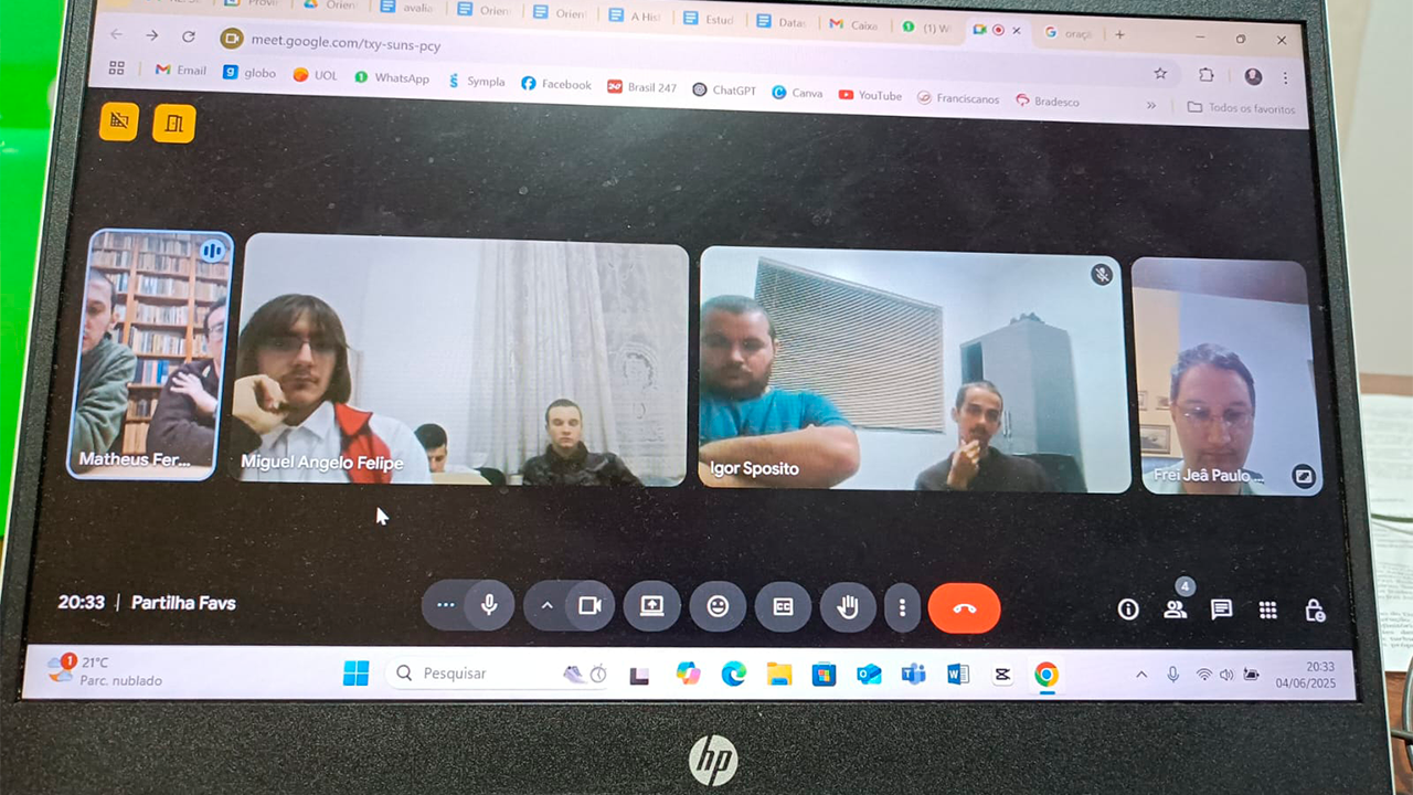 Durante esse tempo em que eles estão em diferentes fraternidades, encontros periódicos online estão sendo promovidos pelo Animador Vocacional Provincial, com o intuito de manter a integração do grupo. O primeiro encontro, realizado em 4 de junho, permitiu que cada vocacionado partilhasse suas impressões e as especificidades de sua fraternidade. A avaliação inicial foi muito positiva, gerando satisfação com a experiência. Espera-se que esse tempo contribua para eles amadurecerem a decisão de ingresso na etapa do Postulantado.