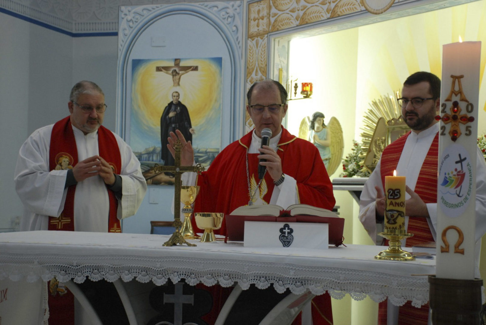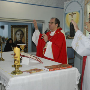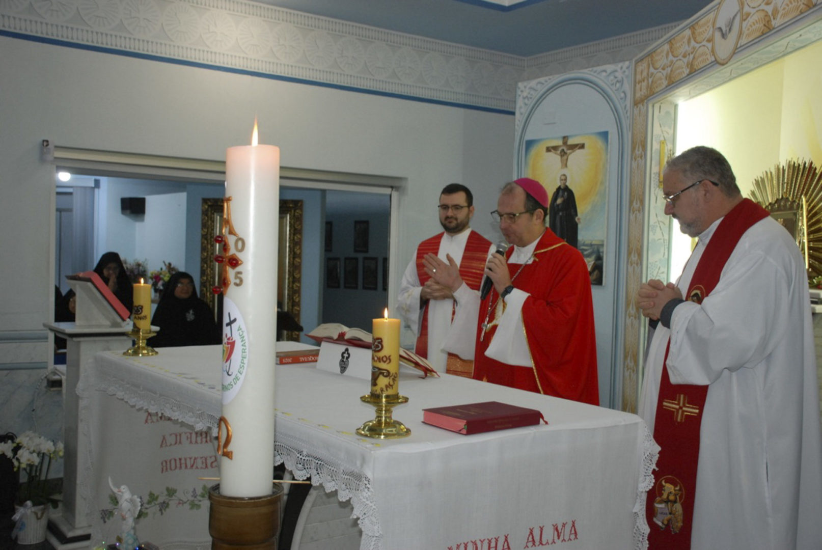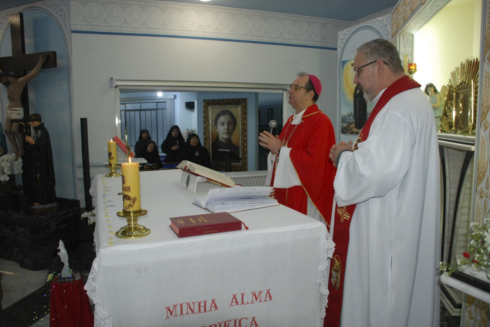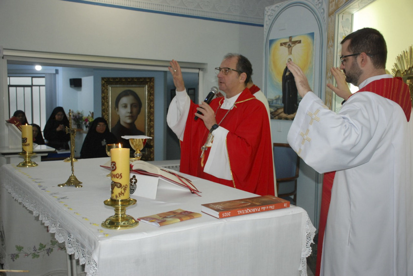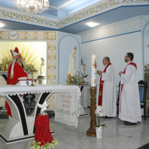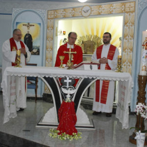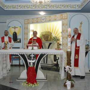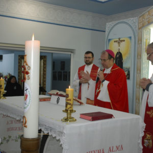 A Eucaristia foi presidida por Dom Edgar Xavier, bispo da Diocese de Palmas-Francisco Beltrão. Concelebraram o pároco da Paróquia São Pedro, Frei Evandro Balestrin, e o guardião da fraternidade, Frei Augusto Luiz Gabriel. Um clima de alegria e renovação espiritual permeou toda a celebração, que incluiu, após a homilia, o rito de renovação dos votos religiosos de Irmã Marlene.