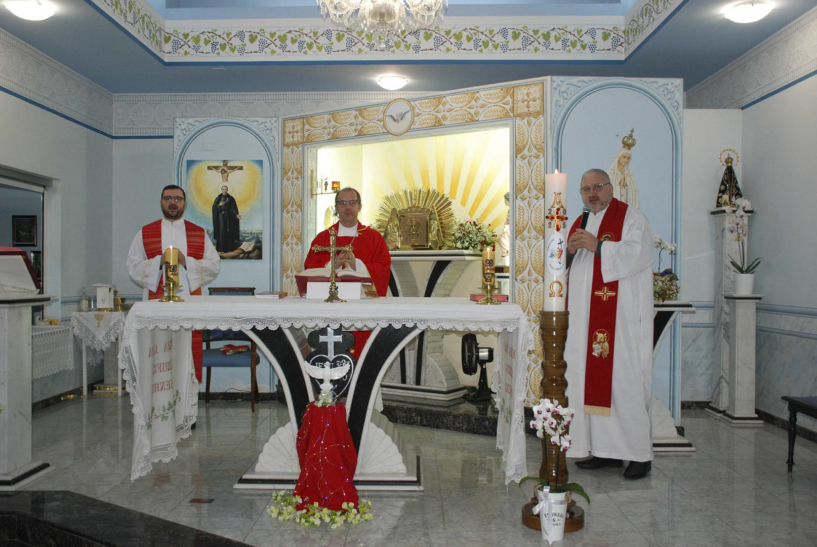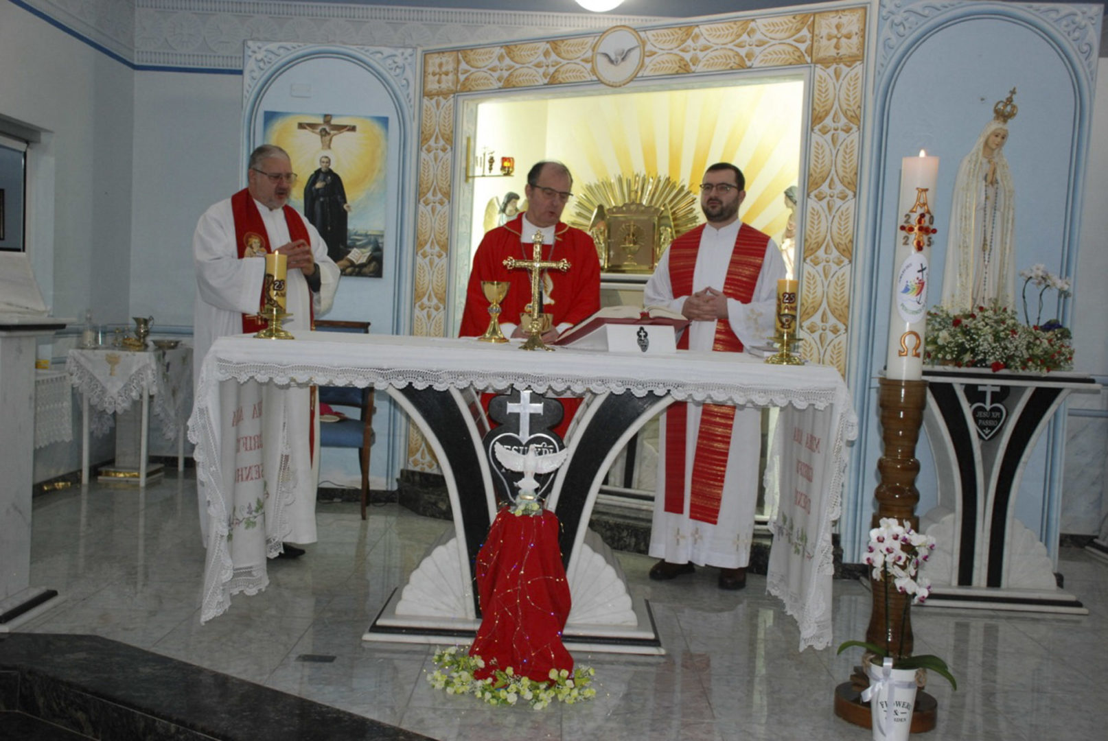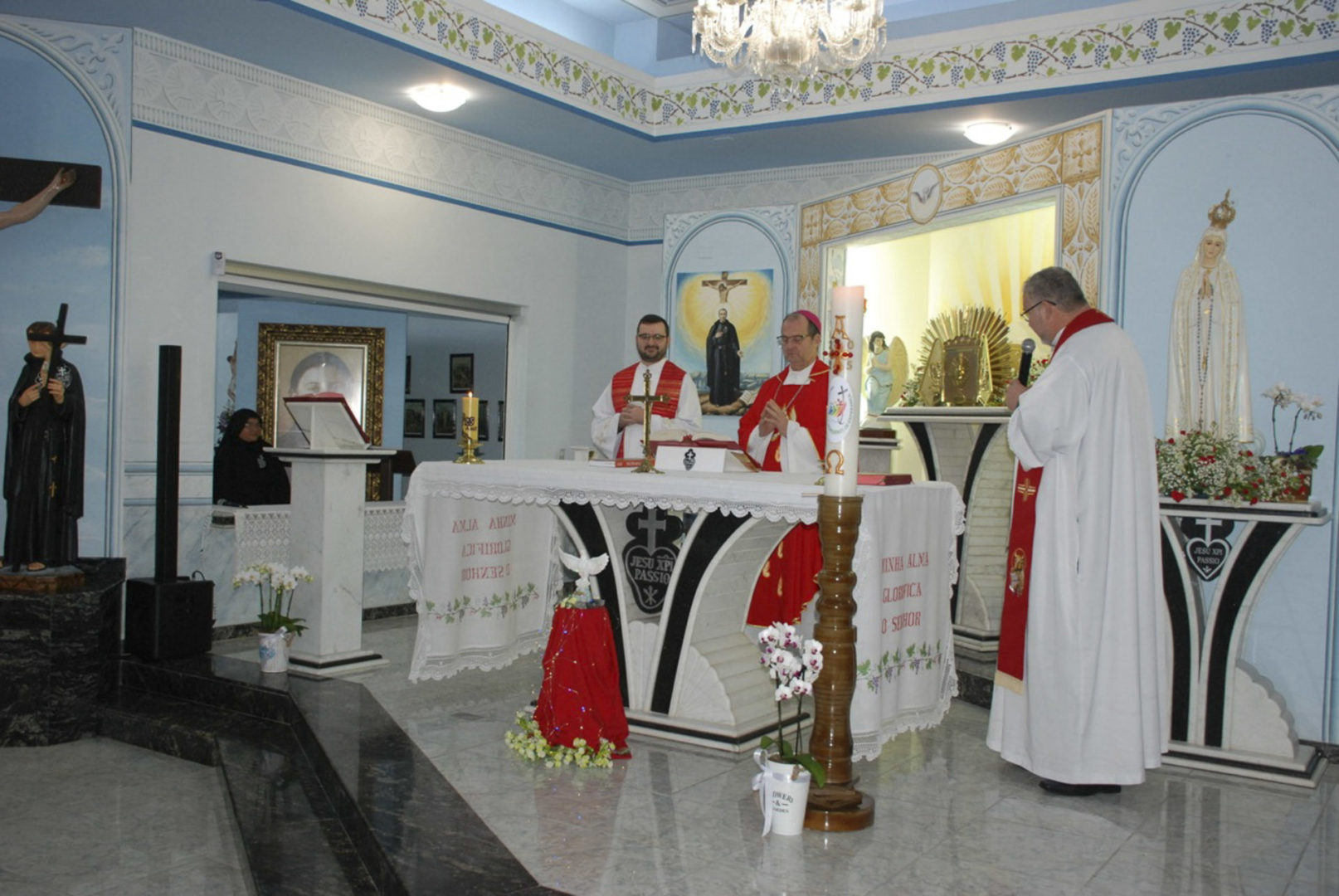 A Eucaristia foi presidida por Dom Edgar Xavier, bispo da Diocese de Palmas-Francisco Beltrão. Concelebraram o pároco da Paróquia São Pedro, Frei Evandro Balestrin, e o guardião da fraternidade, Frei Augusto Luiz Gabriel. Um clima de alegria e renovação espiritual permeou toda a celebração, que incluiu, após a homilia, o rito de renovação dos votos religiosos de Irmã Marlene.