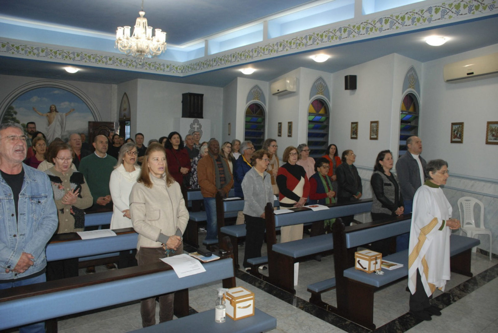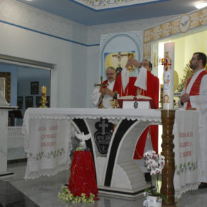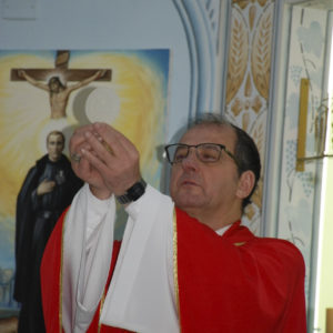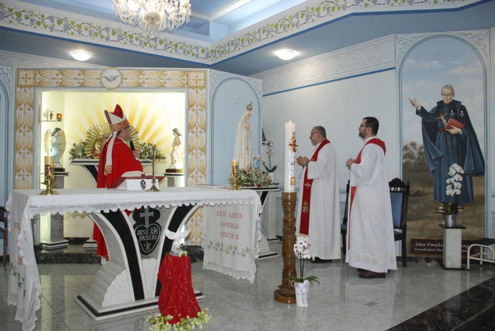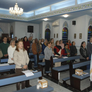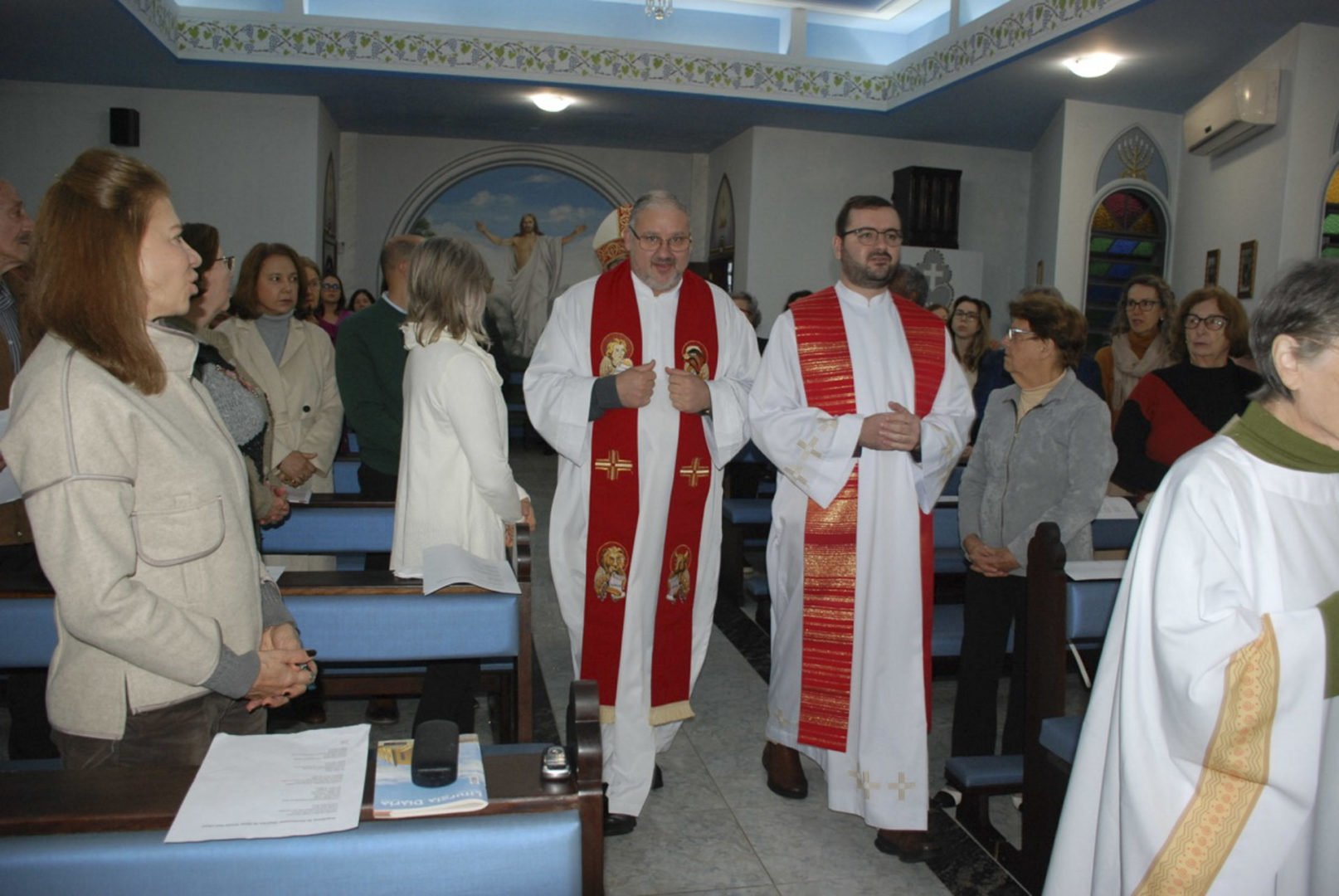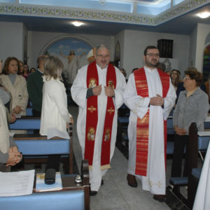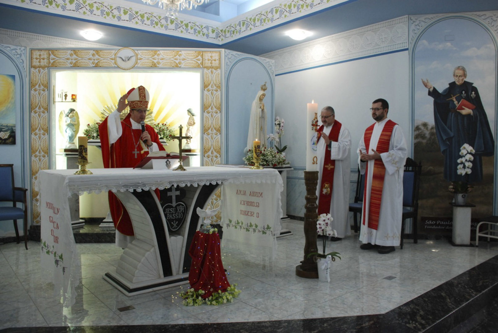 A Eucaristia foi presidida por Dom Edgar Xavier, bispo da Diocese de Palmas-Francisco Beltrão. Concelebraram o pároco da Paróquia São Pedro, Frei Evandro Balestrin, e o guardião da fraternidade, Frei Augusto Luiz Gabriel. Um clima de alegria e renovação espiritual permeou toda a celebração, que incluiu, após a homilia, o rito de renovação dos votos religiosos de Irmã Marlene.