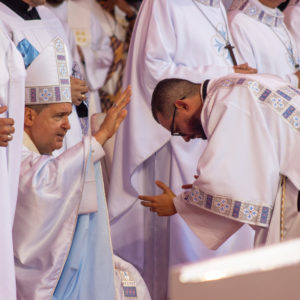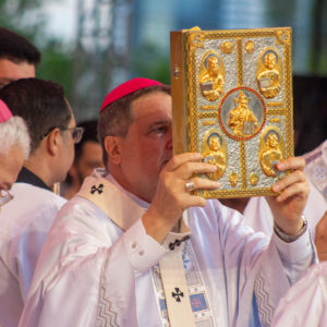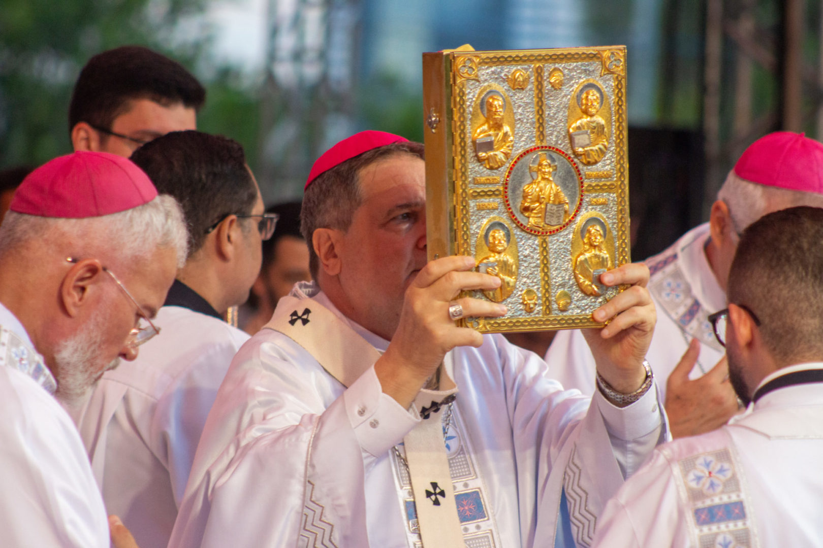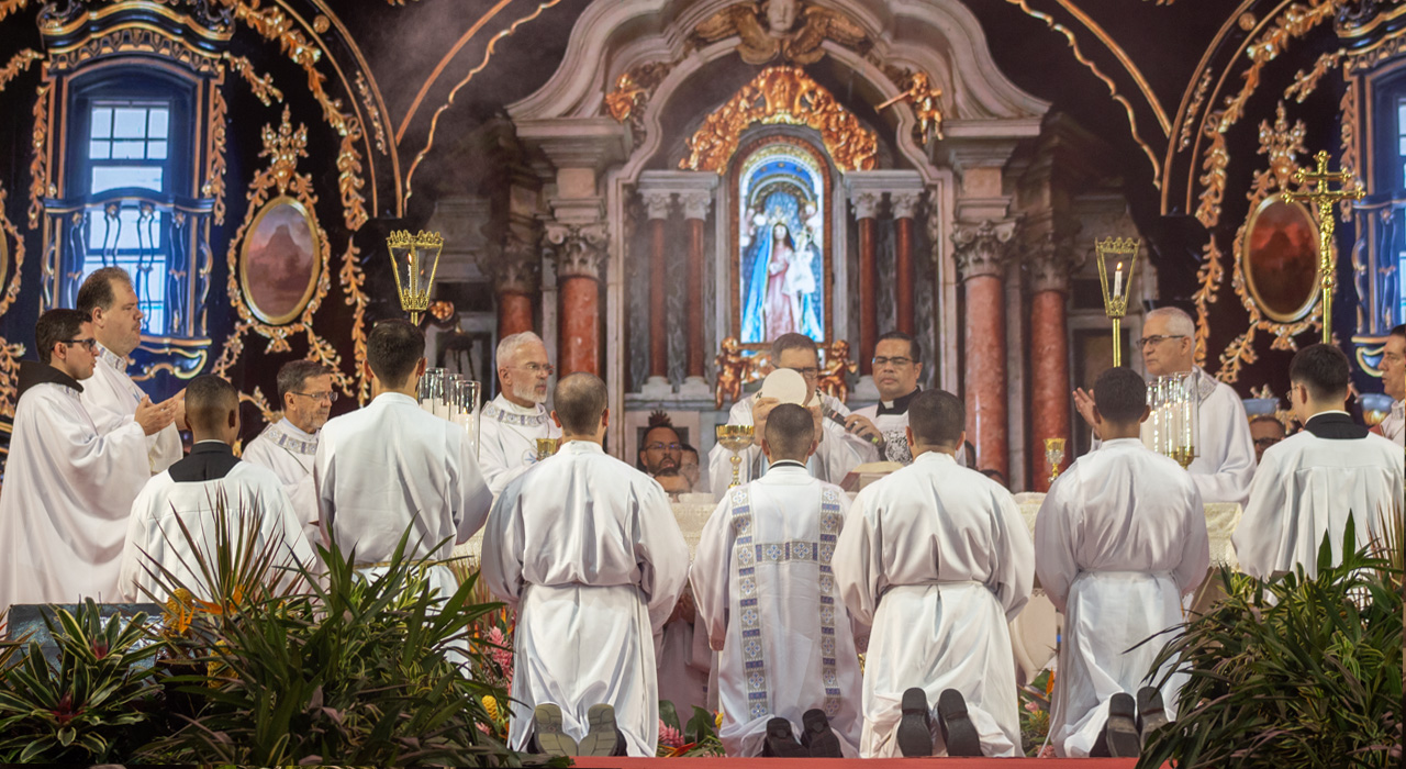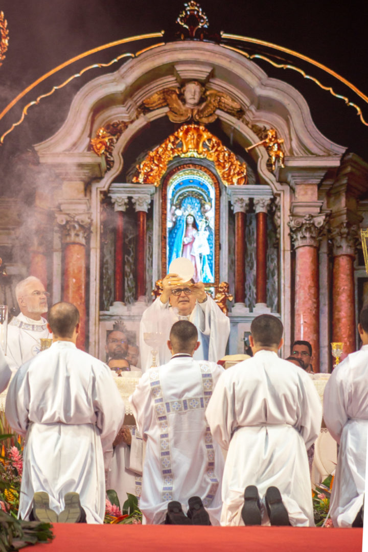 Logo no início da celebração, Dom Ângelo destacou o sentido de comunhão vivido ao longo dos dias: “Com o coração cheio de alegria aqui nos reunimos nesta celebração para concluir esses dias de fé, de oração, da Palavra de Deus, dos encontros, das romarias, das peregrinações que uniu o nosso povo capixaba”. Saudando os bispos, o clero, religiosos e todo o povo de Deus, o arcebispo convidou os fiéis a viverem o encerramento “cheios da alegria do Cristo ressuscitado”.