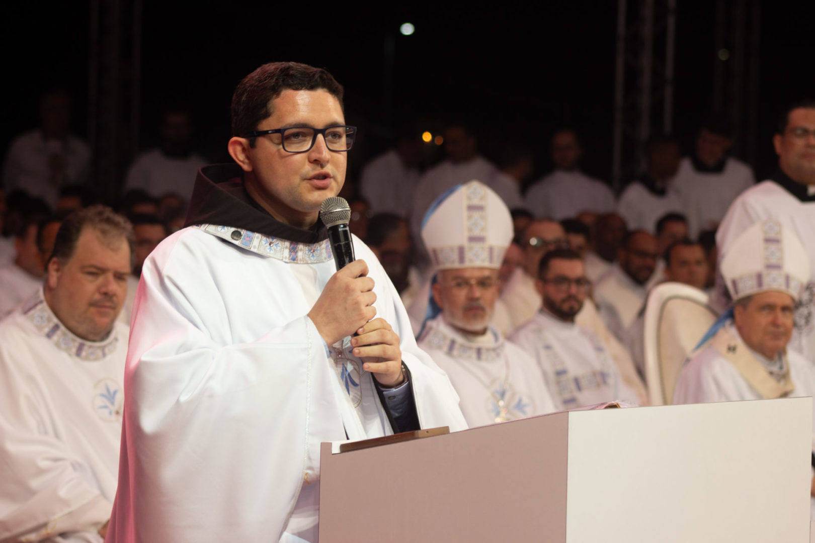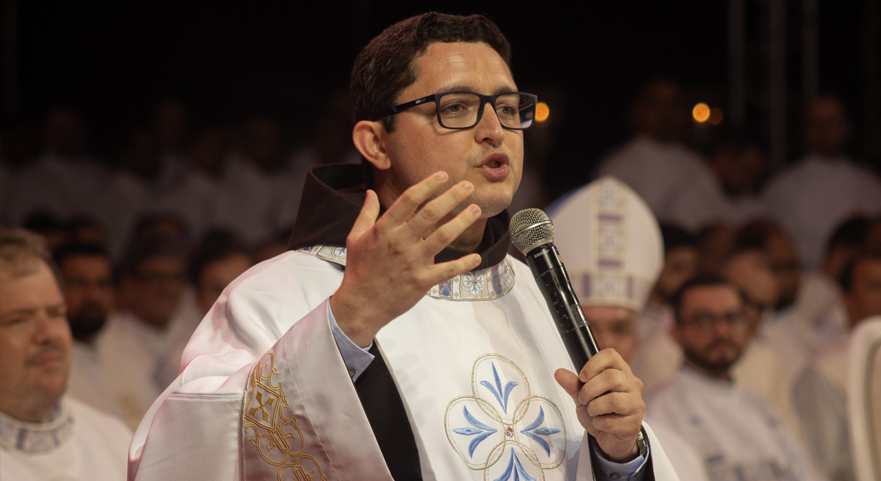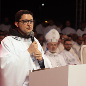 Agradeço aos meus irmãos frades, aqui representados pelo nosso Vigário Provincial, Frei Gustavo Medella. Dizem que melhor do que contar com muitos é contar com os certos. E o lado bom dessa Festa da Penha é que eu contei com os certos, e eles são muitos. Deus seja louvado. Que, no ano que vem, tenhamos o dobro de freis.