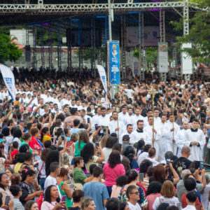 A programação seguiu com o show de encerramento com Thiago Brado, que reuniu os fiéis em um momento de louvor e oração no Parque da Prainha. O cantor entoou canções clássicas da Igreja.
