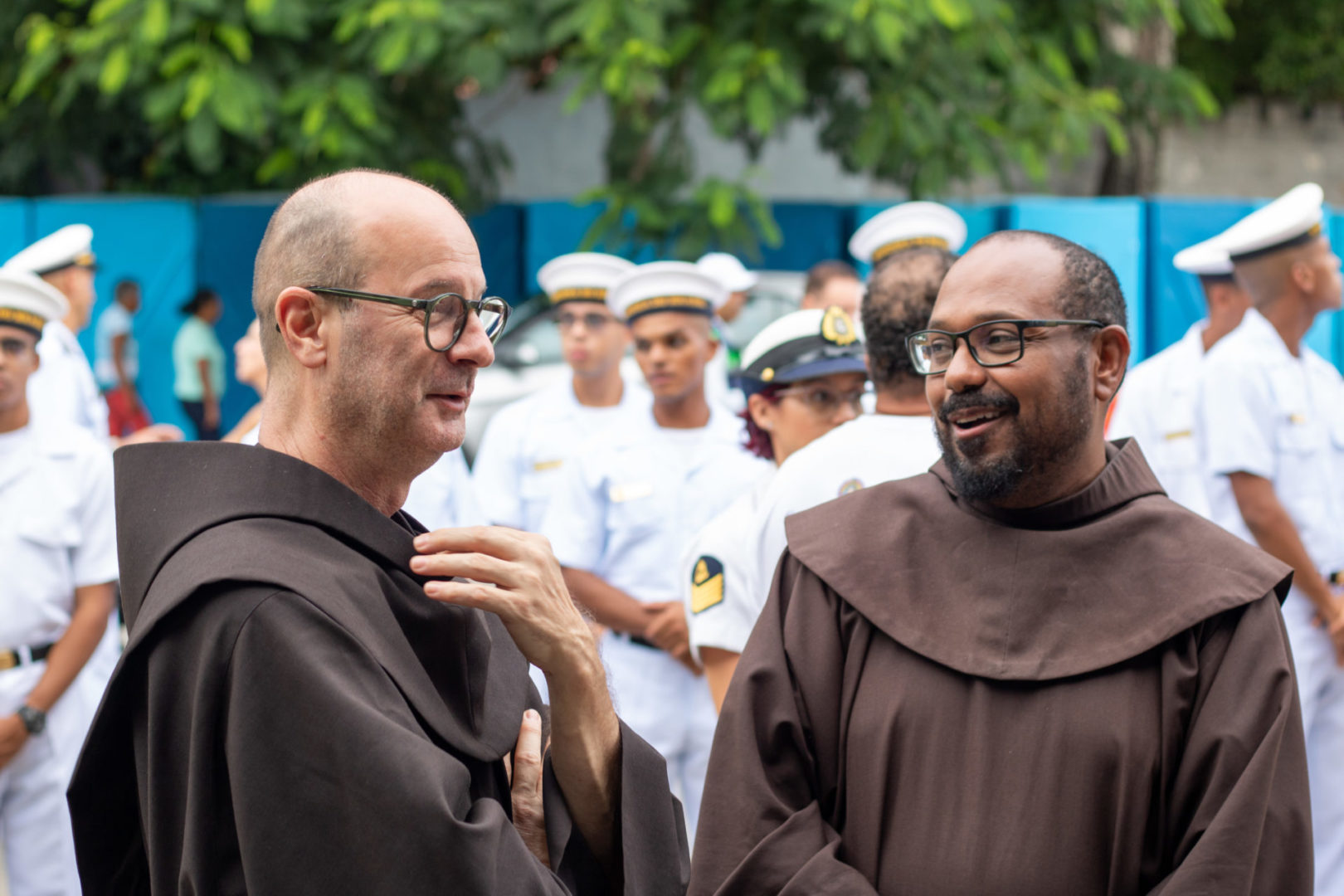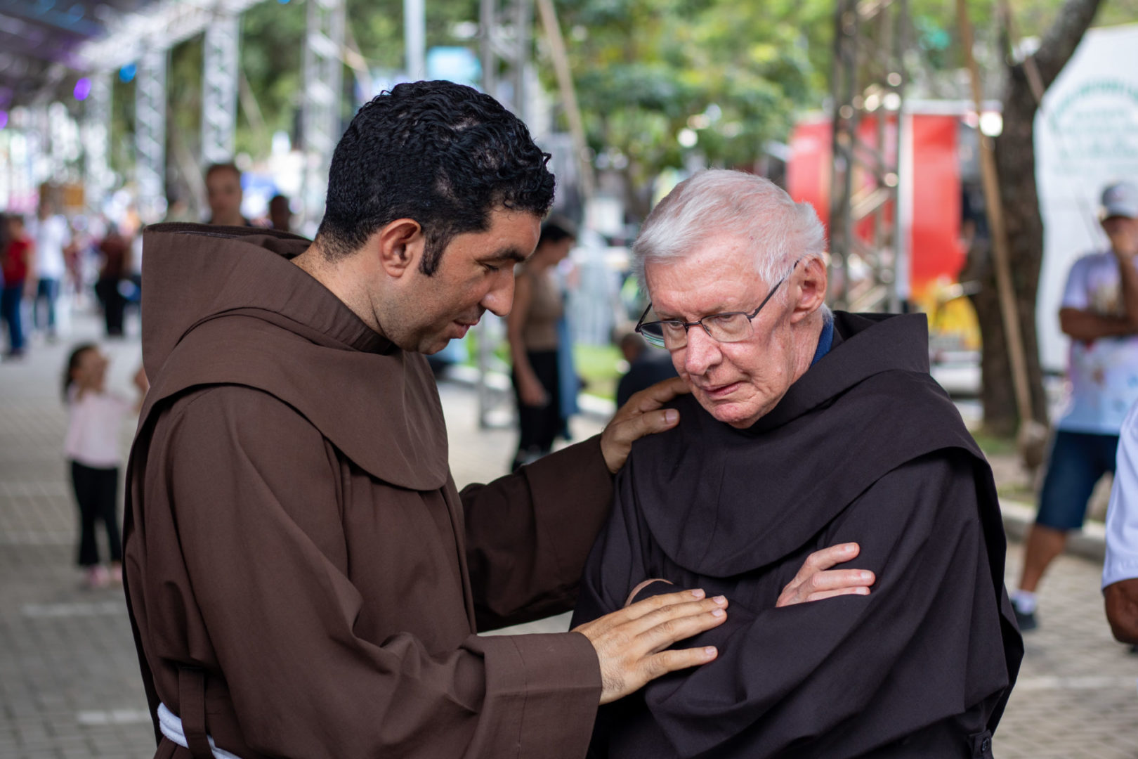 A banda “O Rappa”, na música “Alto Reverso”, diz que nós somos luzes que faíscam no caos. Vamos repetir? Somos luzes que faíscam no caos. Vamos de novo? Somos luzes que faíscam no caos. No mundo ferido, dividido, acelerado, nós escolhemos ser faíscas de paz. Pequenas faíscas, talvez, mas reais e suficientes para iluminar o campinho, para iluminar a praça, para iluminar o convento, para iluminar todo o mundo.
