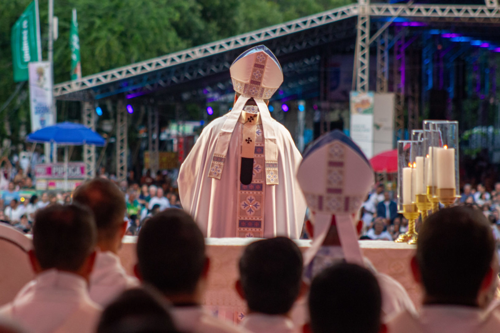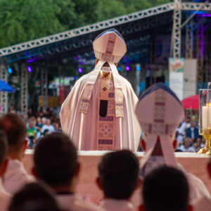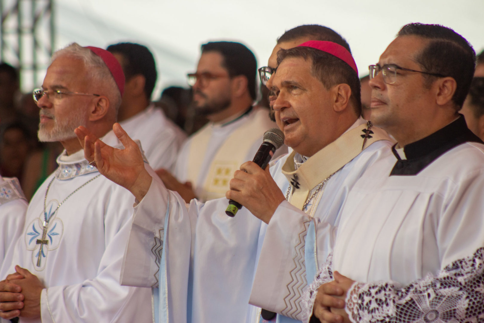 Outro ponto de destaque da homilia foi o reconhecimento da unidade proporcionada pela festa: “Aqui está o povo de Deus, aqui estão as autoridades públicas, aqui estão irmãos e irmãs de outras denominações religiosas. Como é bela a Festa da Penha. Ela nos reúne a todos como um único povo”. Dom Ângelo ainda ressaltou o valor cultural e religioso do evento: “Esse patrimônio é nosso. Vamos conservá-lo, promovê-lo e dinamizá-lo”. Após a comunhão, os bispos presentes também dirigiram palavras ao povo.