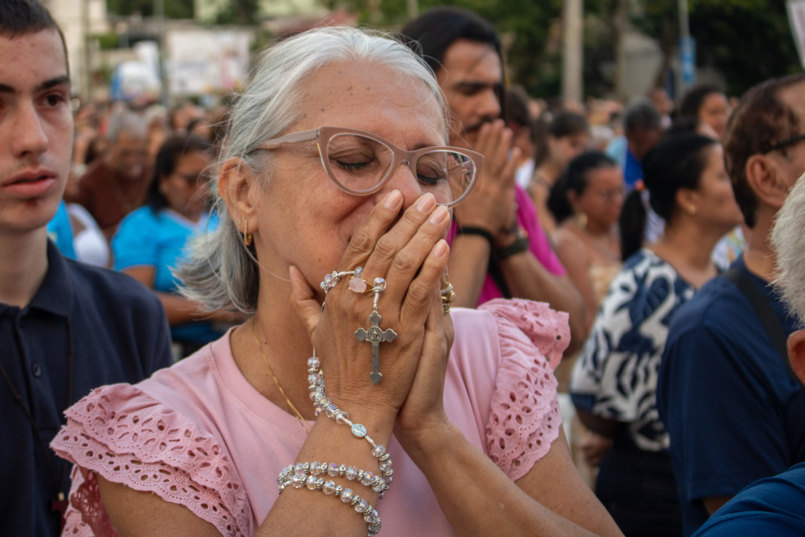 Pelos arredores do palco, multiplicavam-se testemunhos emocionantes. Lina compartilhou a história de sua sobrinha, que após 18 anos tentando engravidar, atribui o nascimento dos filhos à intercessão da santa. Rosângela, por sua vez, relatou ter sobrevivido a um câncer e presenciado milagres na saúde de suas irmãs. Outra fiel, Iranete, emocionou os presentes ao contar que, após 18 abortos, conseguiu realizar o sonho da maternidade.