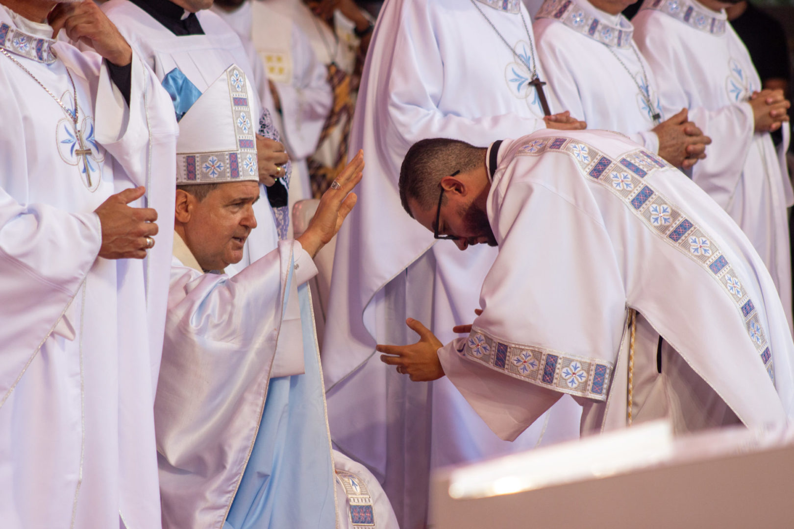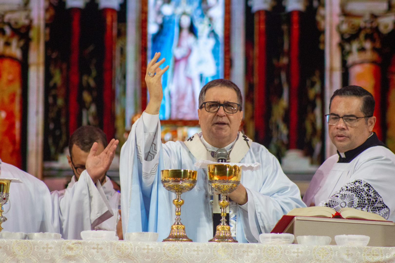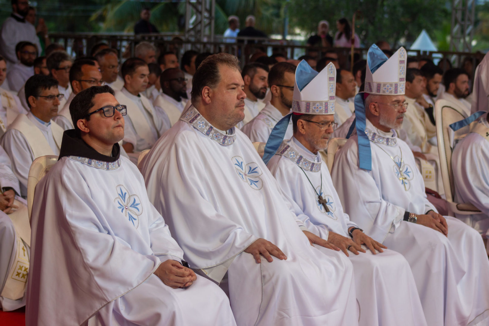 Por isso, eu quero agradecer a alguns artesãos. A Dom Ângelo Mesari, nosso arcebispo, artesão da paz, que sempre tem uma pacífica presença. A Dom Anderson Franklin, artesão da paz, que com o diálogo construiu, junto com esta comissão, esta festa da paz. Ao Padre Cláudio, pela dedicação na coordenação de pastoral. Mencionando-os, agradeço a todos os irmãos presbíteros, diáconos, seminaristas e os nossos amados bispos do nosso regional. Construtores da paz são os artesãos que o Papa Francisco também nos lembrou.