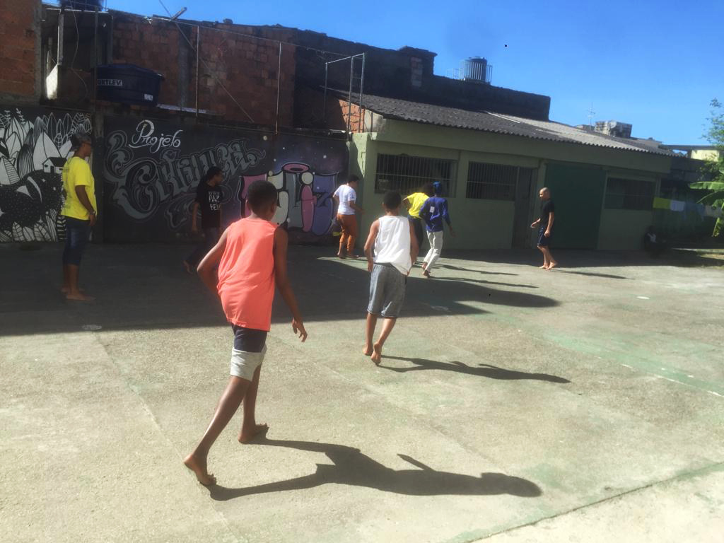 No Orfanato Criança Feliz, em Sao João de Meriti, os missionários estão fazendo atividades esportivas com os meninos do orfanato, e também jogando dominó. Eles ficam no orfanato até os 18 anos. Mas um deles tem 23 anos porque é autista.
