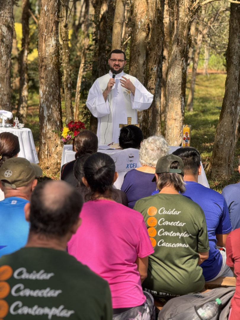Inspirado pelas leituras do dia, Frei Augusto ressaltou a importância do diálogo com a diversidade e com a própria natureza, que clama por justiça e cuidado. “Cada árvore preservada, cada rio limpo, cada comunidade valorizada anuncia a presença de Deus”, afirmou, reforçando o chamado à ecologia integral.