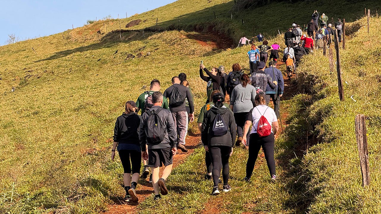 A caminhada começou cedo. Os participantes percorreram trilhas em meio à natureza, atravessando riachos desafiadores, enfrentando tombos e compartilhando muitas risadas. Cada passo foi um louvor à criação, cada paisagem, um cântico de gratidão. No meio da manhã, uma pausa para o café na Cozinha Selvagem, um dos ambientes charmosos da fazenda. Segundo os organizadores, a iniciativa busca ser um momento de itinerância, conexão, tanto com o meio ambiente quanto com a espiritualidade.