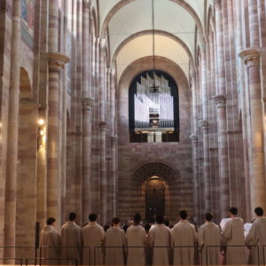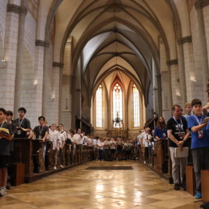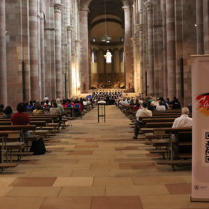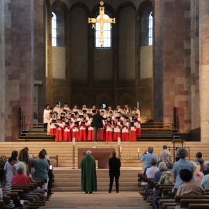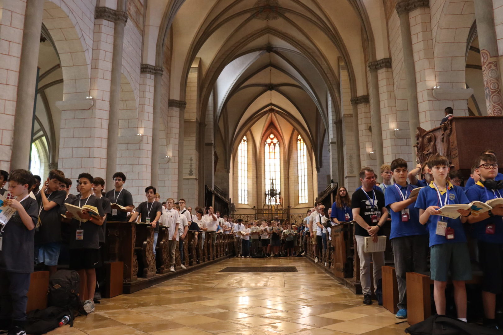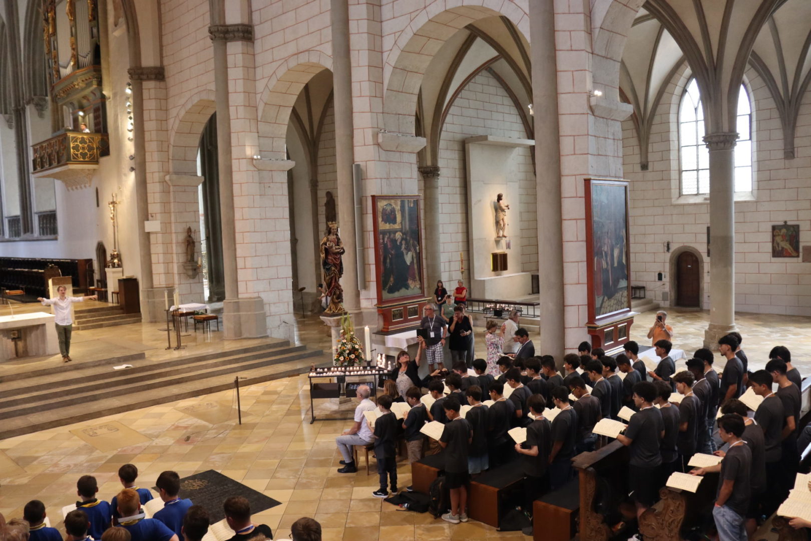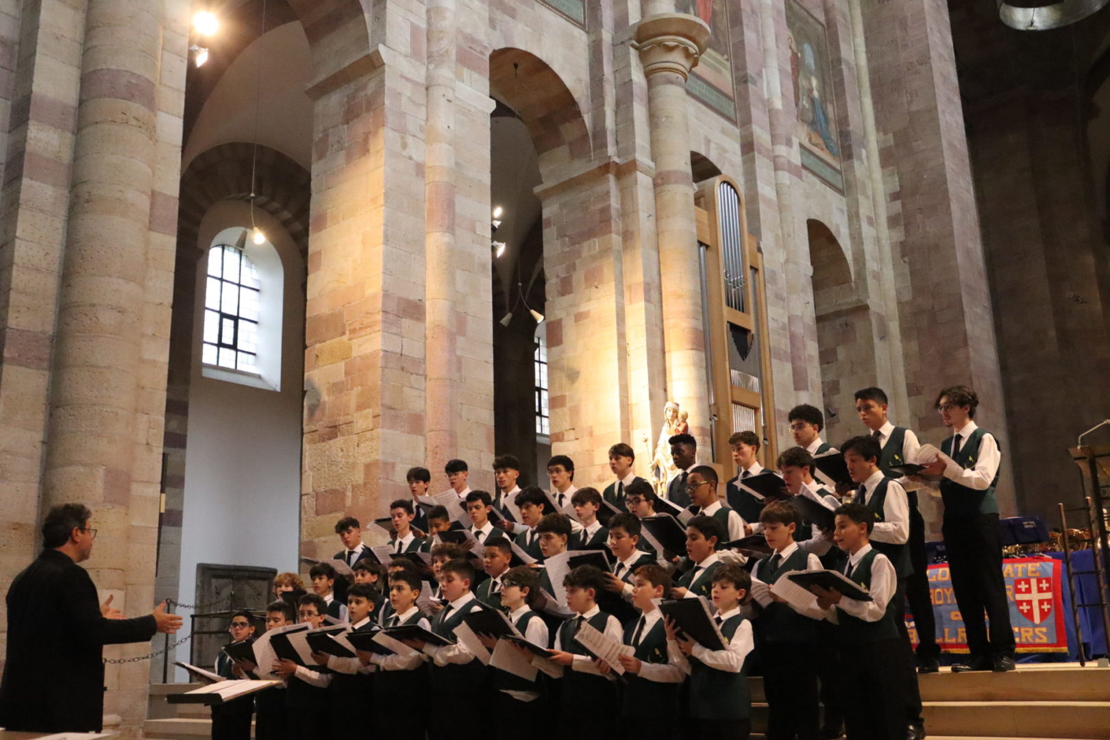 A jornada teve início na cidade de Speyer, onde os 41 coralistas foram calorosamente recepcionados pelo Domkapellmeister Markus Melchiori e pelo Domkantor Joachim Weller. Nos dias 13 e 14 de julho, o Coral participou de uma missa e de um concerto na imponente Catedral Românica de Speyer. O repertório, inteiramente brasileiro, foi muito bem acolhido pelos presentes, que elogiaram entusiasticamente a qualidade musical e a expressividade das apresentações. Além dos compromissos musicais, os jovens coralistas participaram de atividades culturais enriquecedoras, como visitas guiadas à Catedral e sua cripta, ao novo órgão de tubos e ao Museu de Tecnologia. A hospitalidade foi um destaque da estadia: os Canarinhos ficaram hospedados em casas de famílias de membros do Coro da Catedral, o que proporcionou um valioso intercâmbio cultural e humano, marcado por encontros e partilhas fraternas.