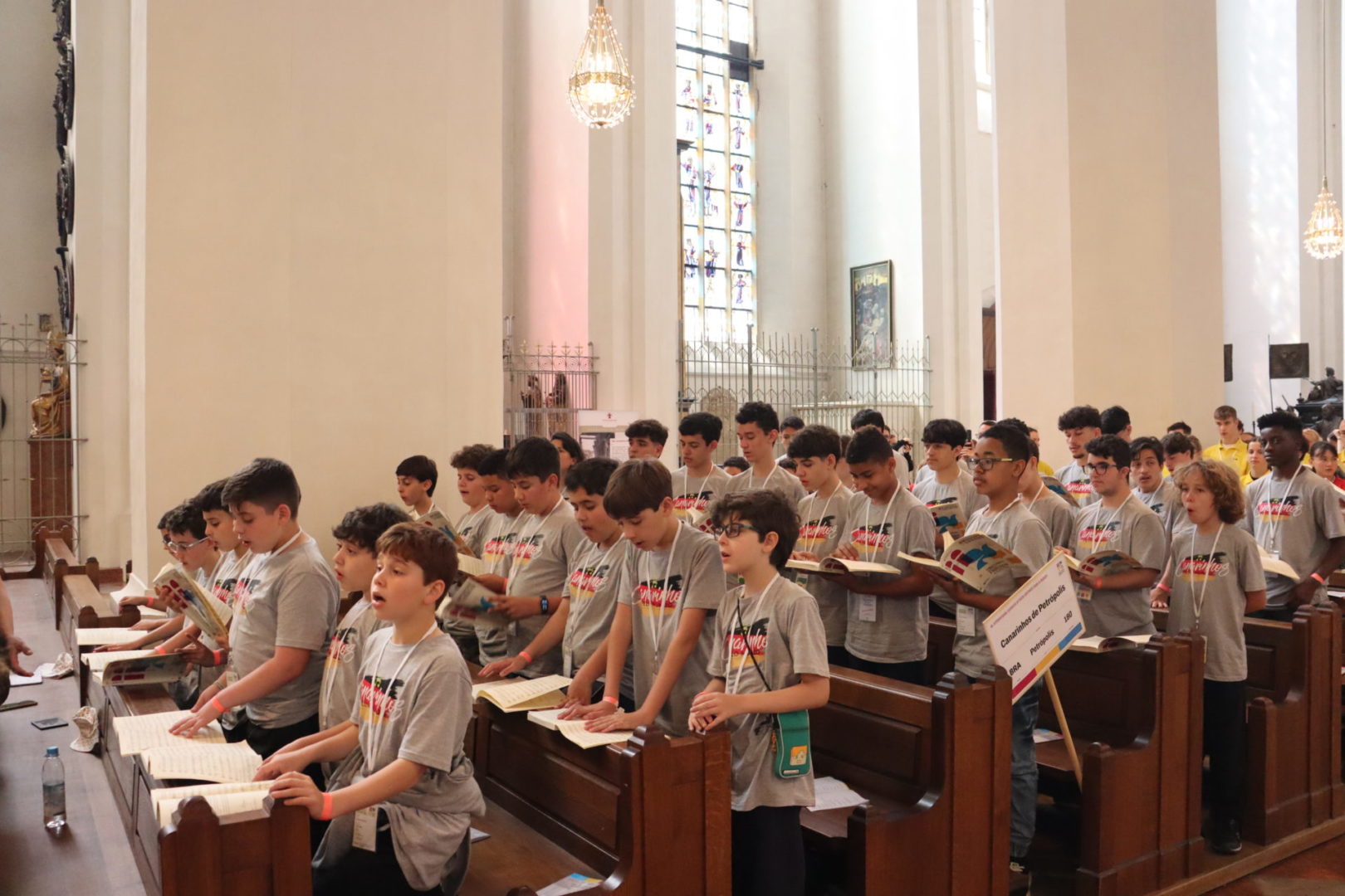 Na quinta-feira, 17 de julho, os Canarinhos participaram, juntamente com o Coral Arautos do Grande Rei, de Xaxim (SC), da Missa das Nações, realizada na Igreja ASAM e presidida pelo presidente do Instituto dos Meninos Cantores de Petrópolis, Frei Marcos Antônio de Andrade. A celebração contou com a presença de Ulrich Bröskamp e de sua esposa Elke, familiares de Frei Leto Bienias, fundador do Coral dos Canarinhos no ano de 1942. No próximo dia 15 de agosto, o Coral completa 83 anos de história!