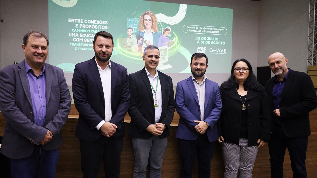 A Universidade São Francisco (USF) promoveu no dia  28 de julho a abertura oficial da Semana de Planejamento Pedagógico e Formação Continuada do 2º semestre de 2025, que neste ano tem como tema “Entre conexões e propósitos, caminhos para uma educação”. As atividades serão realizadas até 1º de agosto.