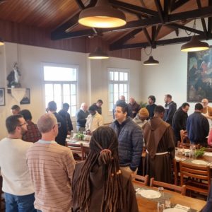 Após o café da manhã, os frades participaram do último momento do encontro, também animado por Frei Ivo. Inicialmente, reuniram-se em grupos de três membros para partilharem experiências concretas que estão sendo vividas em suas fraternidades e serviços. Em seguida, houve uma partilha em plenário, na qual, muitos puderam expressar alegrias e dificuldades dessa etapa da vida franciscana. Frei Ivo também compartilhou suas experiências pessoais recentes e fez uma síntese do caminho trilhado nesses dias do Encontro dos Frades Under Ten. Unidos pelo mesmo espírito e pela mesma missão, os frades retornaram às suas fraternidades, após o almoço, revigorados pela força do Senhor, que acompanha e sustenta cada irmão em sua vocação e serviço. Um envio com a certeza de busca e de desejo desse grande projeto compartilhado de Ordem e de Província.