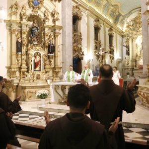 A terça-feira, primeiro de julho, começou com a Oração das Laudes. Em seguida, o Ministro provincial, Frei Paulo Roberto Pereira, presidiu a Celebração Eucarística. Ele expressou sua alegria com a presença dos frades neste espaço simbólico: “Nos 350 anos de nossa Província, reunimo-nos neste local histórico para recordar o encontro entre passado e futuro. Nossa Província, em todas as épocas, foi edificada por frades jovens e experientes que, juntos, trilharam caminhos de coragem e esperança, buscando responder com fidelidade aos desafios de cada tempo. É por isso que aqui estamos reunidos”.