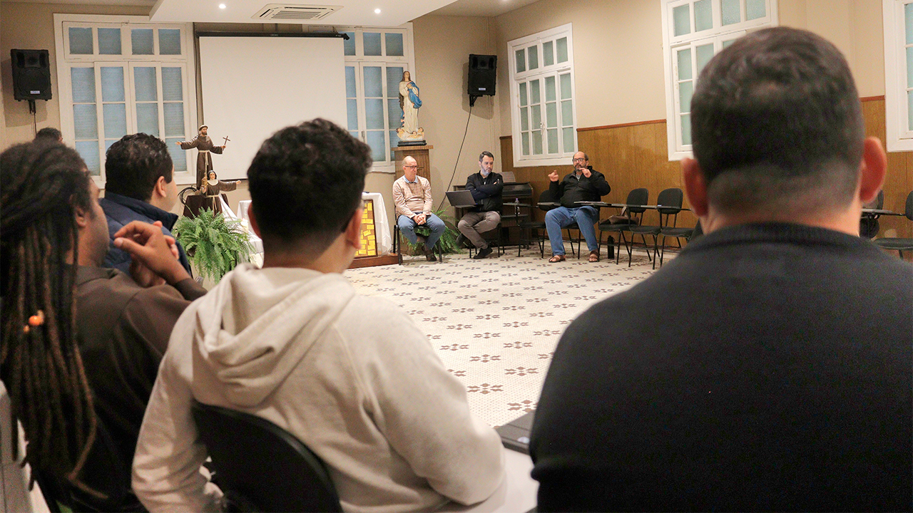 No período da tarde, Frei Rodrigo da Silva Santos apresentou uma reflexão sobre a “Identidade e pertença do religioso” dentro da Ordem dos Frades Menores. Ele destacou que a identificação com a vocação franciscana é um caminho contínuo e exigente, mas que, quando bem vivido, conduz à plenitude e à realização. “A Ordem busca reconhecer em cada frade a atualização de seu carisma, e o frade, por sua vez, procura viver a identidade carismática da Instituição. Assim se realiza a Profissão Religiosa. Essa identidade franciscana tem um rosto concreto e está sempre em sintonia com o projeto da Ordem e da Província”, afirmou. E concluiu: “A santificação da Ordem acontece por meio de fraternidades que refletem esse desejo e luta por santidade — um dom que se torna doação ao mundo”.