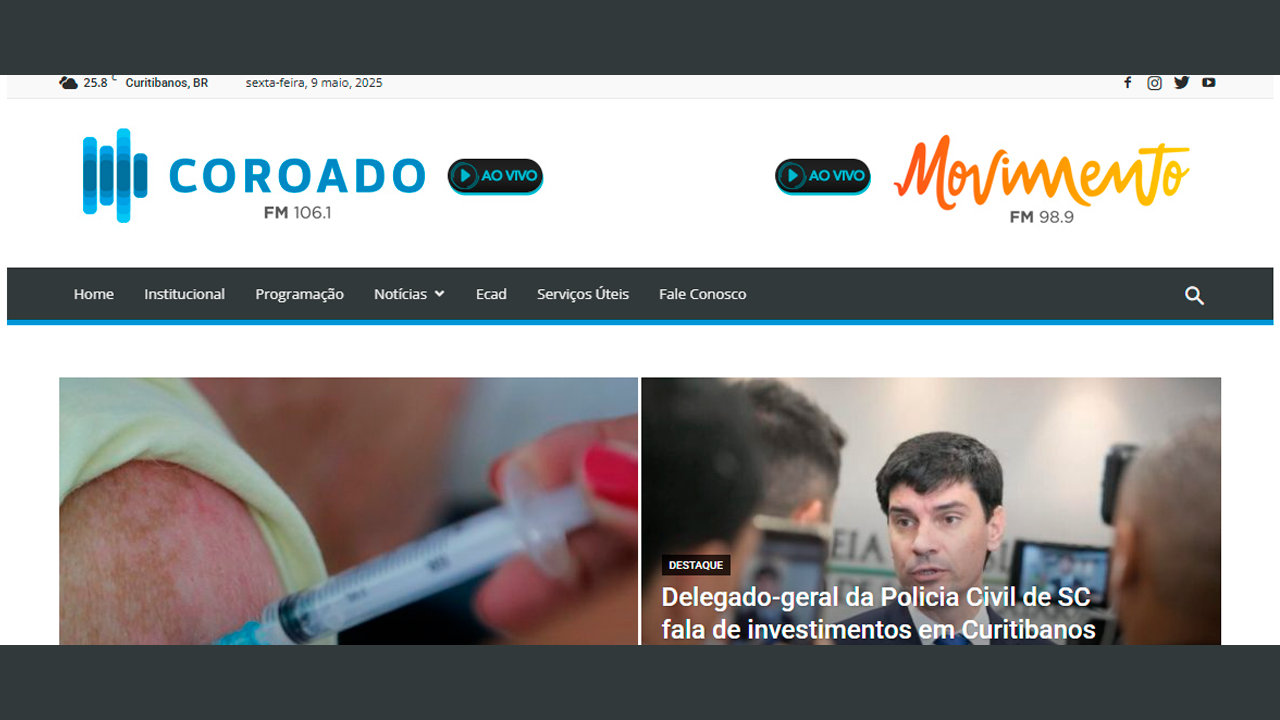Acesse o portal das emissoras: https://portalcoroado.com.br/home/