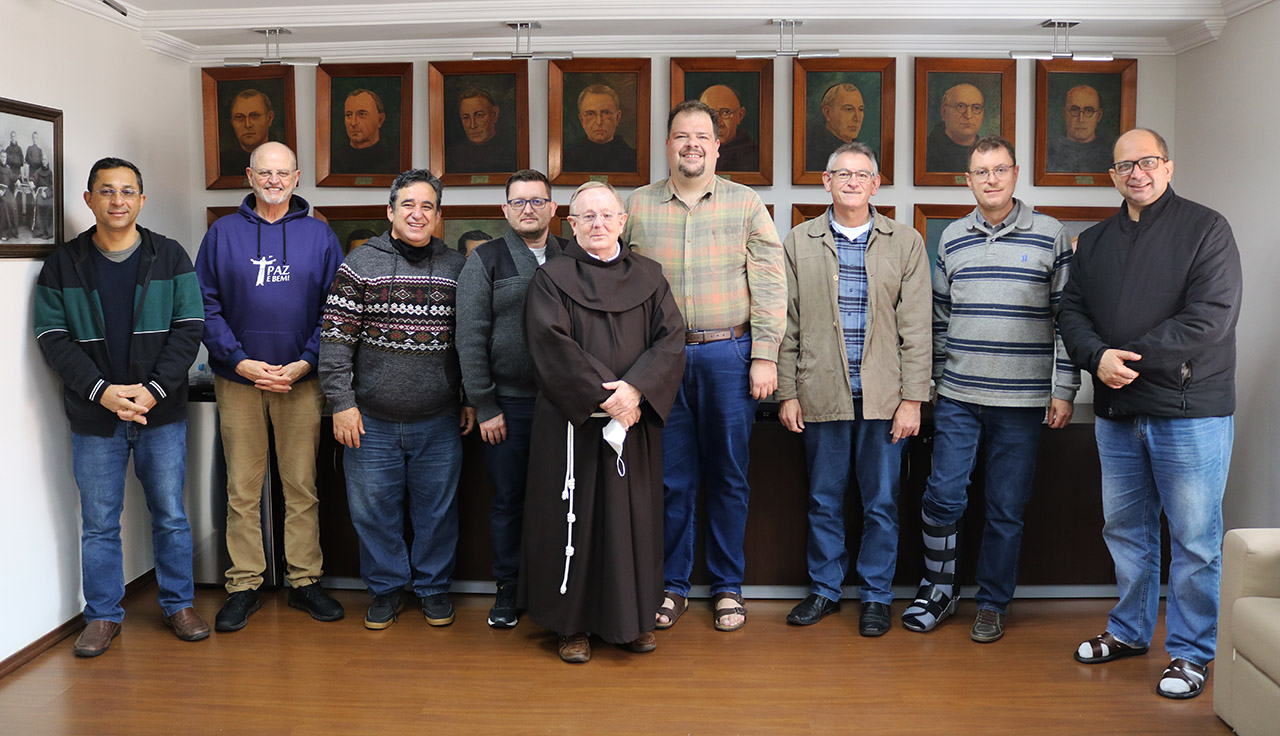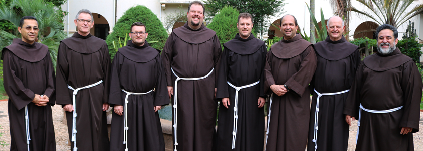 Foto da esq. para dir.: Os definidores provinciais: Frei Daniel Dellandrea, Frei Robson, Frei Volney José Berkenbrock, Frei Gustavo Wyand Medella, Frei Paulo Roberto Pereira, Frei Gilberto da Silva, Frei Diego Atalino de Melo e Frei Gilson Kammer.