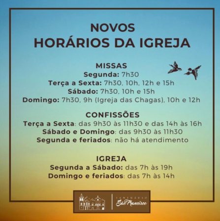 Domingo: 7h30, 9h (Igreja das Chagas), 10h e 12h