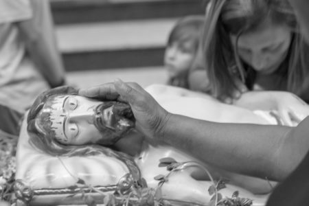 Tendo acolhido a todos no amor reconciliador de Cristo, a Igreja enaltece a árvore da vida, que floriu e deu fruto, restituindo o paraíso à humanidade. É o rito da glorificação e adoração da Cruz, seguido do ósculo.