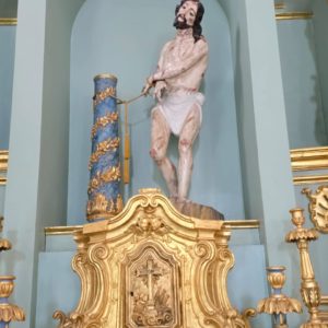 A igreja é constituída de um belíssimo altar mor, com retábulo feito de talha dourada, muito bem conservado. Imagens barrocas de São Francisco, Santo Antônio e da Imaculada Conceição encimam o altar. Chama a atenção, no entanto, a belíssima imagem, em tamanho natural, do Senhor Bom Jesus atado à Coluna, que dá nome ao convento. Dois anjos tocheiros barrocos, em tamanho natural, de madeira, também se destacam pela harmonia barroca. Há ainda dois altares laterais, mais simples. É digno de nota a imagem de Sant’anna, que, segundo afirmam, foi trazida da Fortaleza do Humaitá, pelos soldados que retornaram da Guerra do Paraguai.