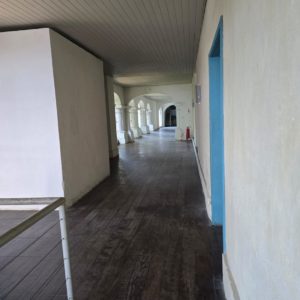 No lado direito da igreja ainda existe um corredor espaçoso, que é parte daquilo que um dia foi o claustro do convento. O mesmo corredor encontra-se também na parte de cima. Esses amplos corredores ao longo de todo o cumprimento da Igreja permitem ter uma ideia da grandiosidade daquela construção. Nas fotos antigas percebe-se que existiam dois claustros, um de cada lado da igreja. Hoje o que sobrou é apenas a igreja. Há ainda a torre sineira, com o sino. Também desapareceu o arco cruzeiro, que ficava em frente à Igreja. Hoje também não há nem sinais dos alicerces do antigo convento. O Asilo dos Inválidos, por sua vez, também está em ruínas, como podemos constatar pelas fotos.