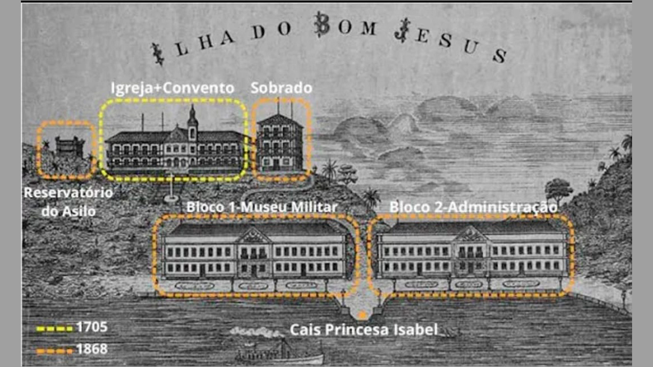 Durante a Guerra do Paraguai (1864-1870), o Governo cogitou construir um edifício para acolher os soldados mutilados ou doentes que regressavam da guerra. O nome dado à construção na época era grandiloquente: Asilo para os Inválidos da Pátria. O terreno do convento foi o escolhido. Consta que os frades não foram consultados. O fato é que, no dia 29 de julho de 1868, era inaugurado solenemente, na Ilha do Bom Jesus, o Asilo dos Inválidos da Pátria. Era uma construção nova (ainda não totalmente acabada), mas que também ocupava parte do convento. No ano de 1875 foram feitas as negociações com a Província, para a legalização da venda do terreno e do convento ao Governo. O convento e a ilha foram vendidos por 60 apólices da dívida pública, de 1 conto de réis cada uma. O último frade que morava na ilha, frei Manuel de Santa Isabel Brandão, que servia como Capelão do Asilo, foi exonerado em 1875.