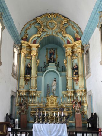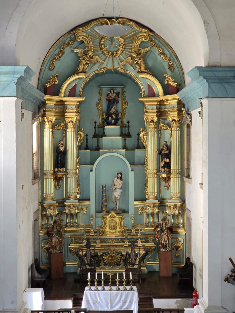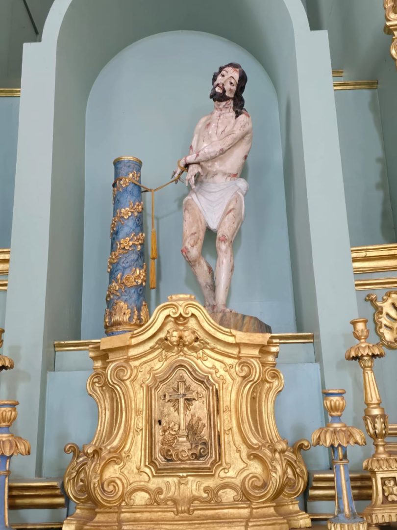 A igreja é constituída de um belíssimo altar mor, com retábulo feito de talha dourada, muito bem conservado. Imagens barrocas de São Francisco, Santo Antônio e da Imaculada Conceição encimam o altar. Chama a atenção, no entanto, a belíssima imagem, em tamanho natural, do Senhor Bom Jesus atado à Coluna, que dá nome ao convento. Dois anjos tocheiros barrocos, em tamanho natural, de madeira, também se destacam pela harmonia barroca. Há ainda dois altares laterais, mais simples. É digno de nota a imagem de Sant’anna, que, segundo afirmam, foi trazida da Fortaleza do Humaitá, pelos soldados que retornaram da Guerra do Paraguai.