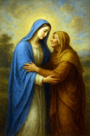 No evangelho de Lucas (1, 46-49), o cântico de Maria, no momento da visita à sua prima Isabel, fortalece a sua entrega aos desígnios de Deus e a sua imagem de santidade. “Minha alma glorifica ao Senhor, meu espírito exulta de alegria, em Deus, meu Salvador, porque olhou para sua pobre serva. Por isso, desde agora, me proclamarão bem-aventurada todas as gerações, porque realizou em mim maravilhas aquele que é poderoso e cujo o nome é Santo”.